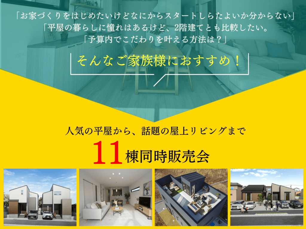 11棟同時販売会|人気の平屋も屋上リビングも!